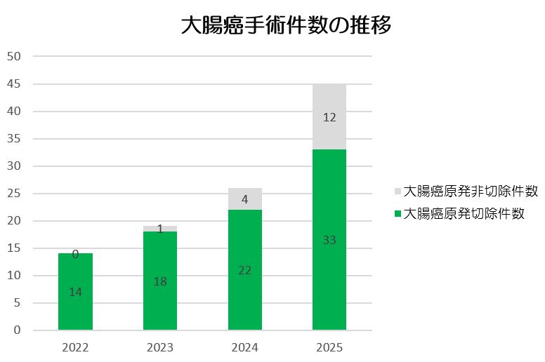 2022年度は、外科医師2名の退職に伴い手術症例数が減少しましたが、4月に兵庫医科大学下部消化管外科から2名の常勤医師が着任し、手術症例は2023年7月現在月間1.5倍を上回る状況になっています。