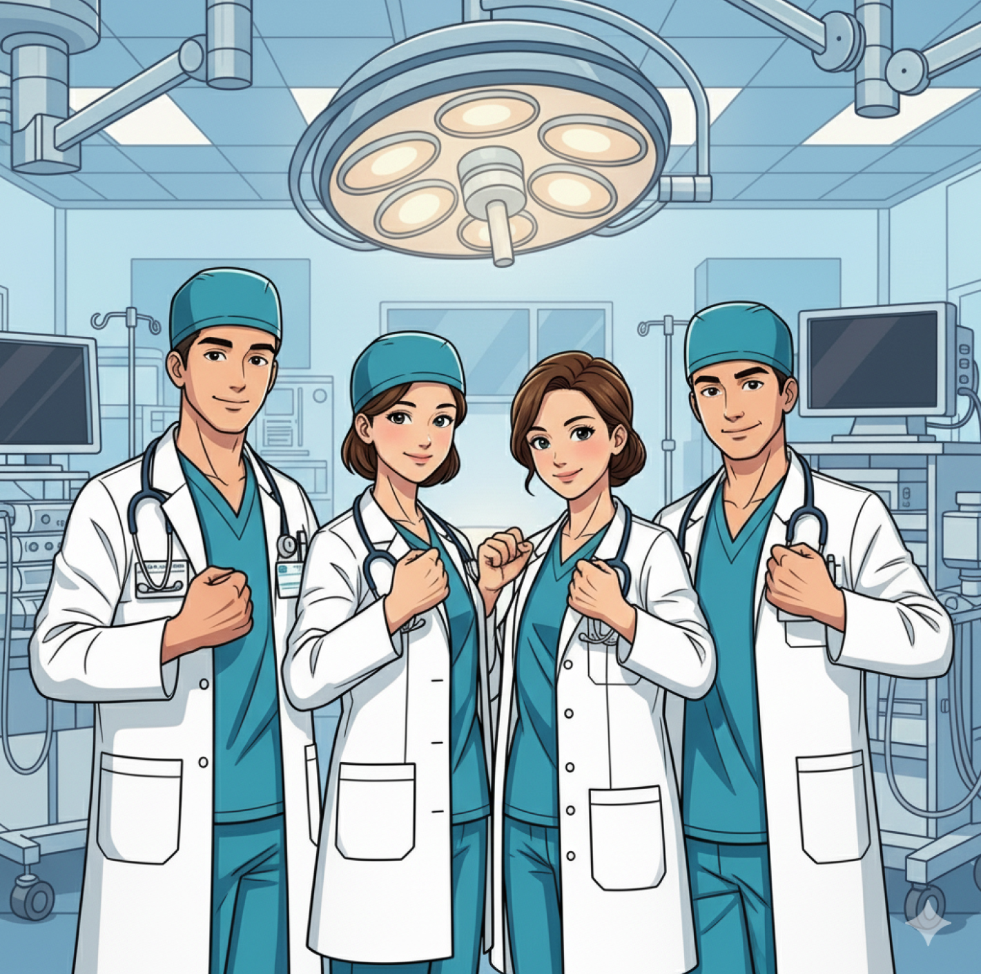 - 感染予防のため、手術場はBio Clean Room (BCR)で宇宙飛行士が着るような防護服を着用して手術を行っています